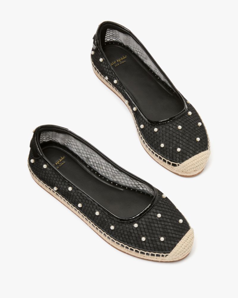 Kate Spade,Pearl Fishnet Espadrille Ballet Flats,Fishnet,Mesh,Nylon,Ballet Flats,Espadrilles,Fabric,Pearl,Pull Tab,Breatha...,Black