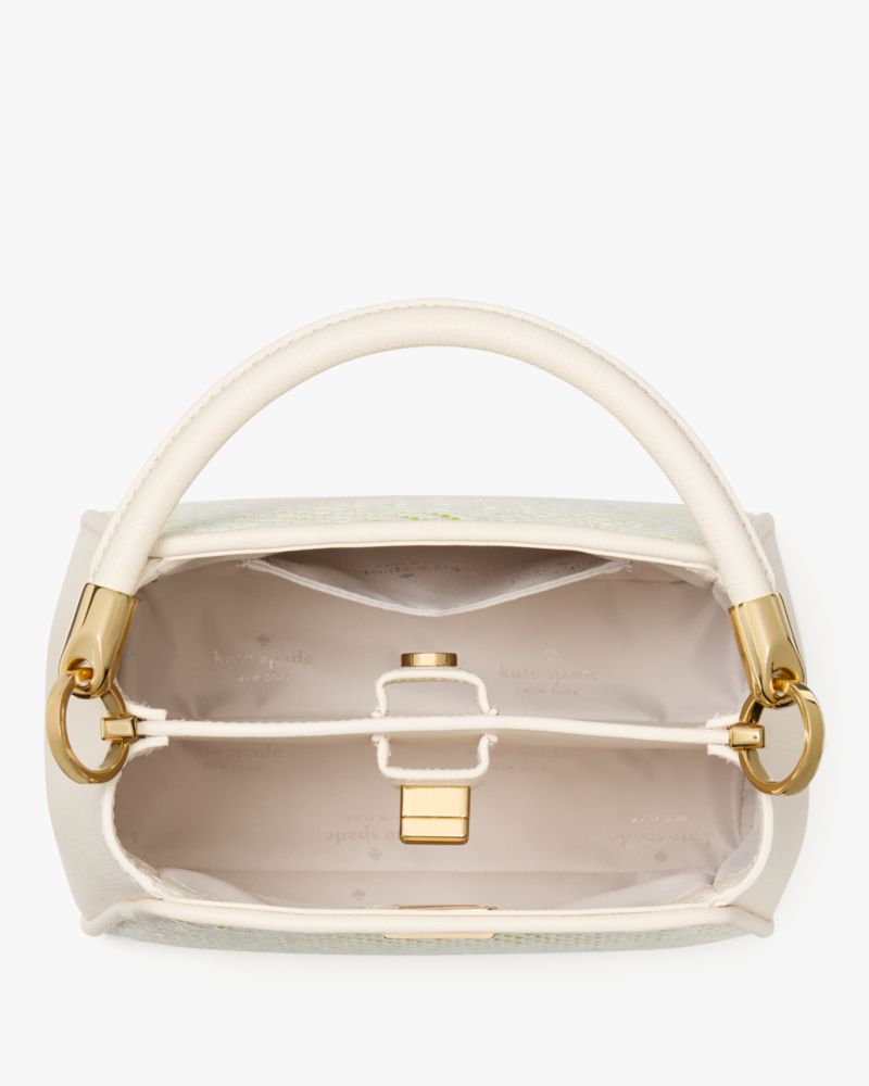 Kate Spade,Phoebe Straw Small Top Handle Bag,Canvas,Satchel,Straw,Logo,Color Block,Gold Metal,Day Party,Work,Multi Color