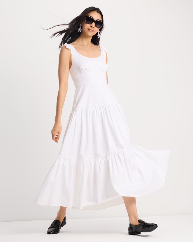 Sundress season is here! If you like a classic look, opt for this tiered style made from our French Navy stretch poplin.