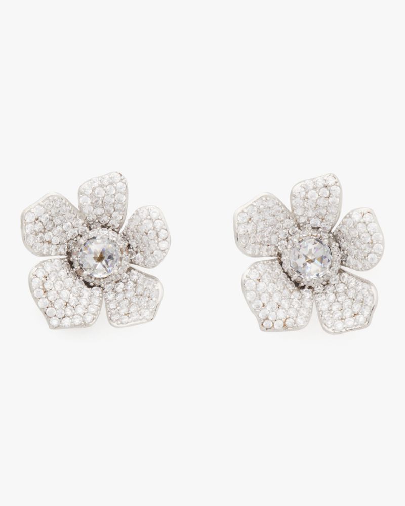 Kate Spade,Poppy Power Statement Studs,Studs,Crystal,Floral Embellishment,Rhinestones,Titanium,Formal,Clear