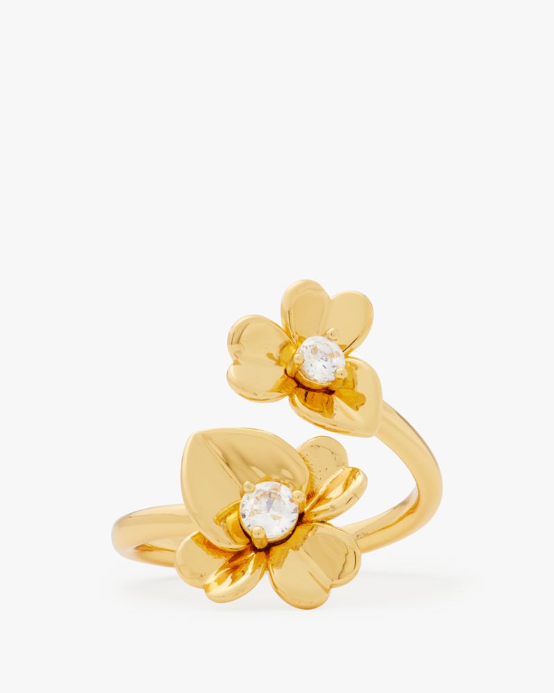 Kate Spade,Precious Pansy Wrap Ring,Twist,Crystal,Floral Embellishment,Gem Embellishment,Stackable,Gold Metal,Day Party,Co...,Clear