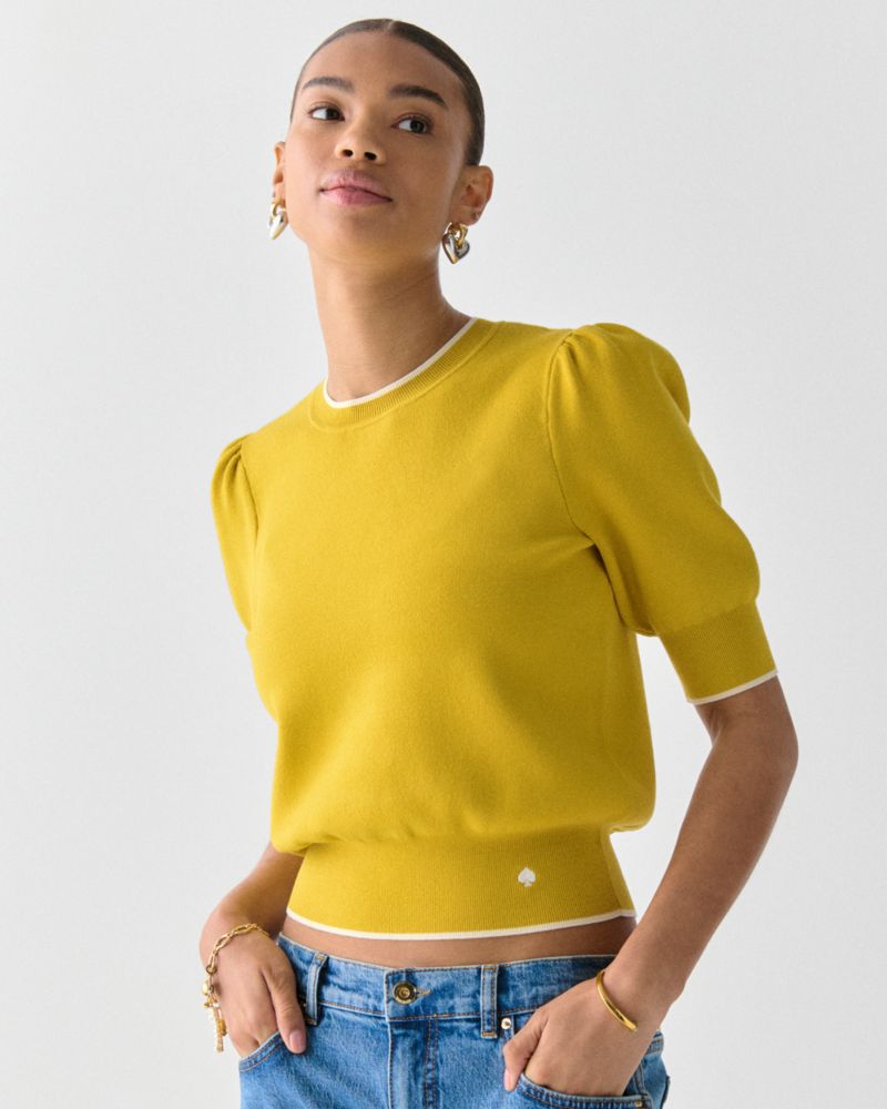 I love this short sleeve sweater. The color is a bold mustard yellow. I love bold colors, so this is perfect. It fits a little big. I got the small. I haven't washed it yet. It might shrink when I wash it. The quality is good. I think it's a good value for the price.