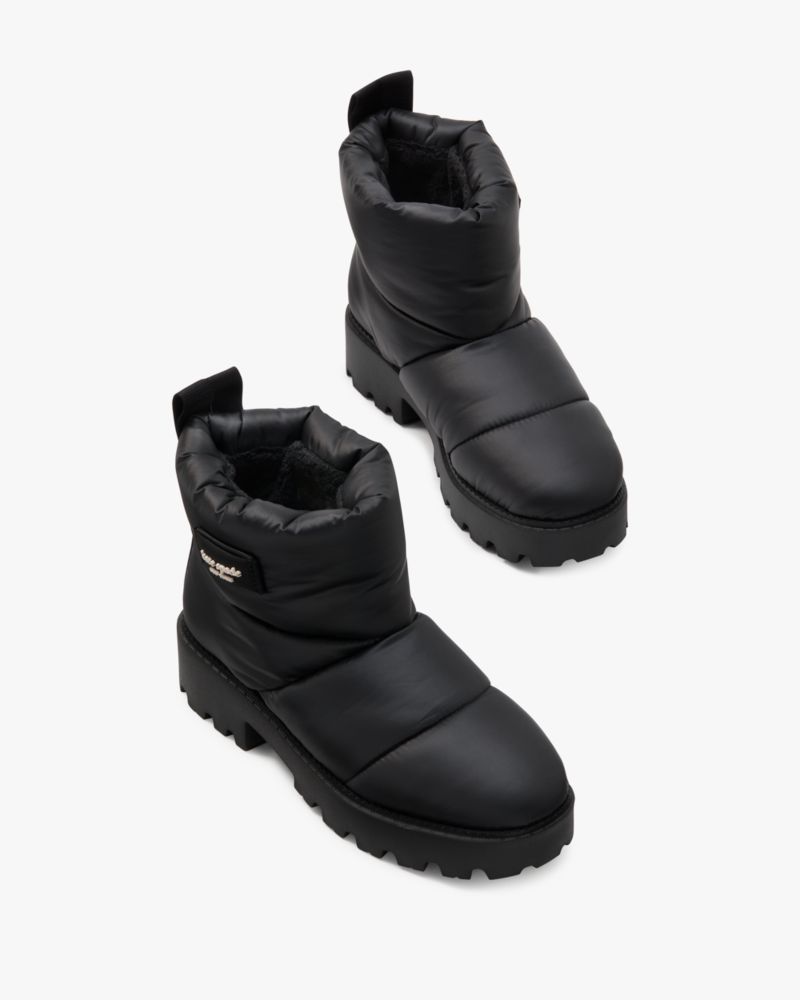 Kate Spade,Puffed Pull-on Booties,Nylon,Winter,Logo,Metal,Pull Tab,Outdoor,Black