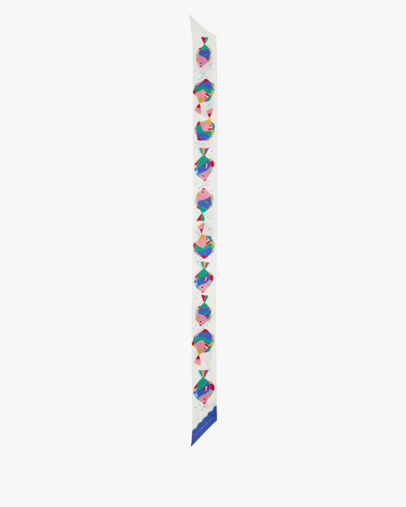 Kate Spade,Rainbow Fish Skinny Scarf,Neckerchief,Color Block,Logo,Word Embellishment,Casual,White