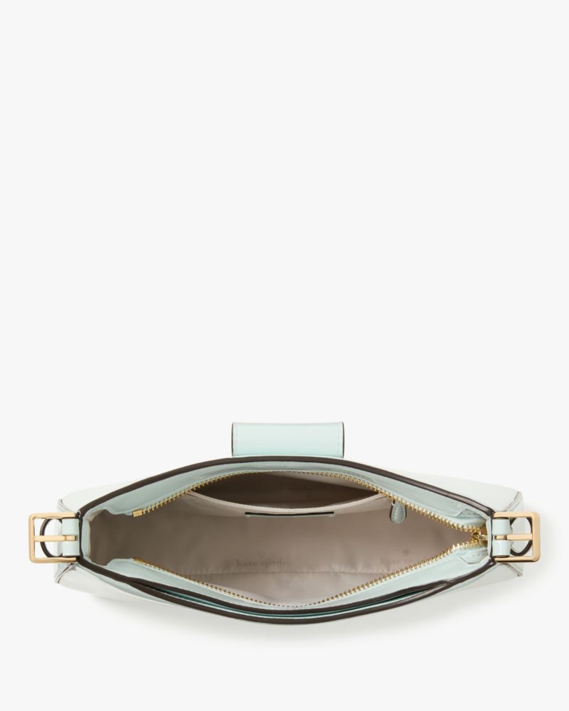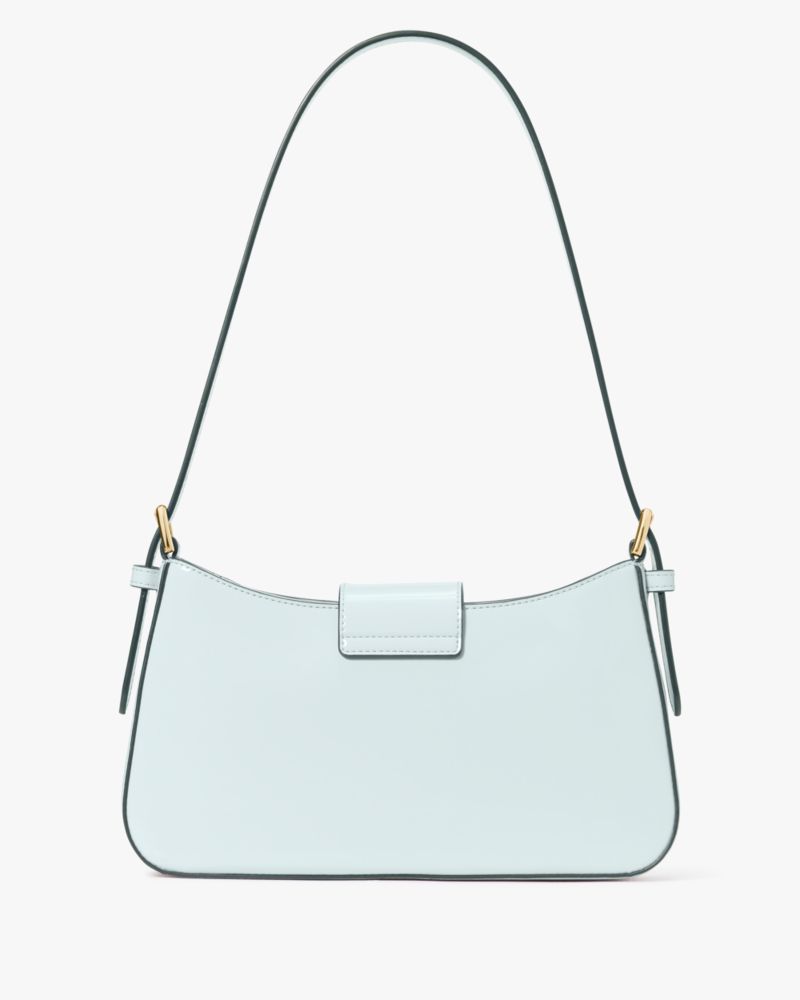 I absolutely fell in love with this bag. The mossy green color is so beautiful and the shape is perfect. It is sized nicely for an evening bag and the shiny finish tips it over the top. It fits over the shoulder nicely so you can be hands free and it has just enough room for wallet and phone.