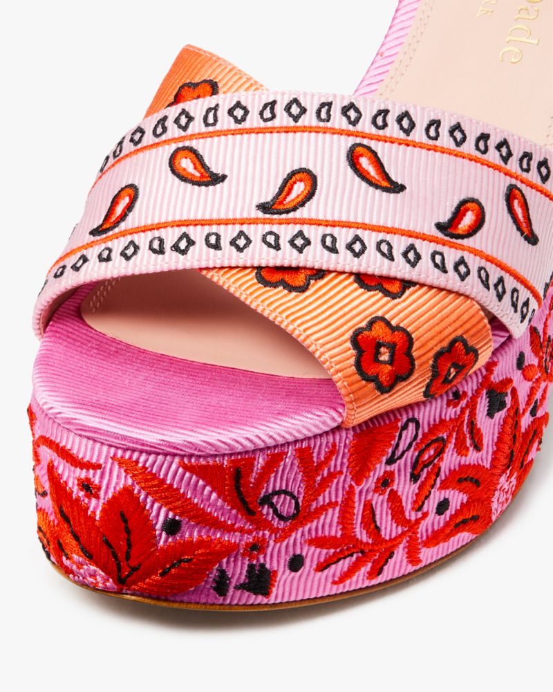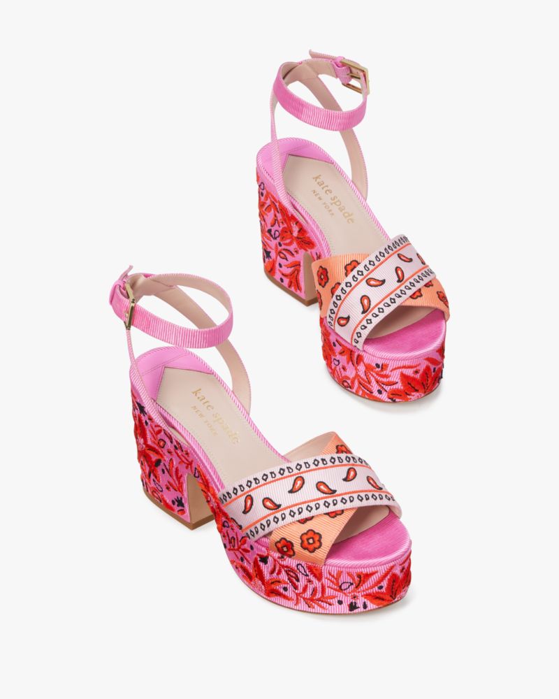 Introducing our leg-lengthening update to the Rio slide sandals. Designed with chunky platform heels in our Bandana Patchwork print grosgrain, this colorful pair is perfect for some summertime fun.