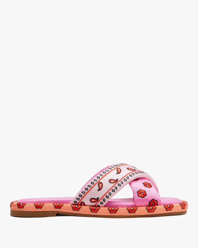 Find your paradise with our Rio slides. Made from our Bandana Patchwork print grosgrain, these sandals take you from the pool to happy hour with ease.