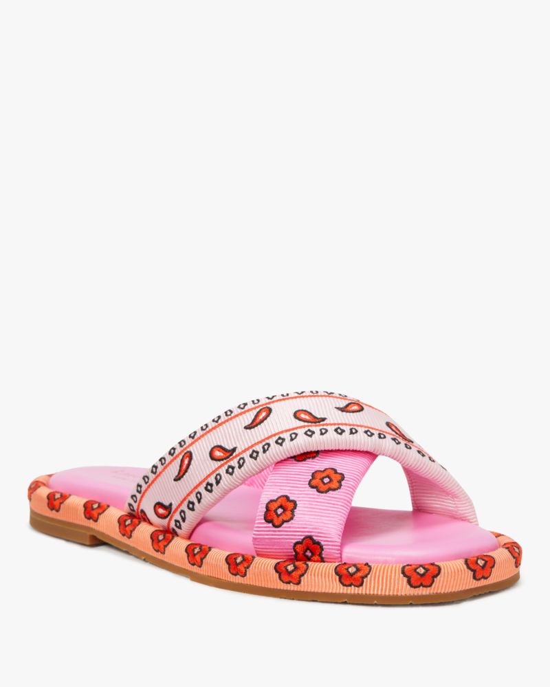 Find your paradise with our Rio slides. Made from our Bandana Patchwork print grosgrain, these sandals take you from the pool to happy hour with ease.