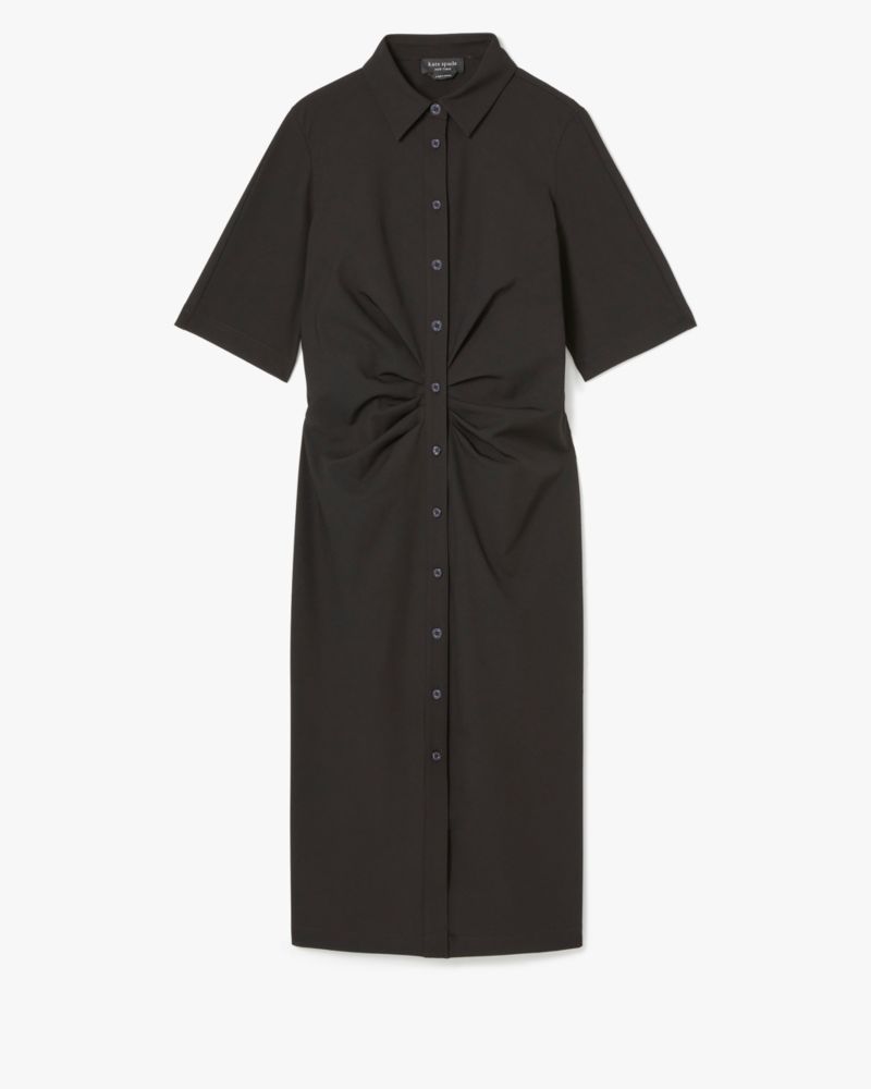 The classic button-down dress just got an elegant upgrade. We tailored this one in ruched crepe with a matching belt along the back.