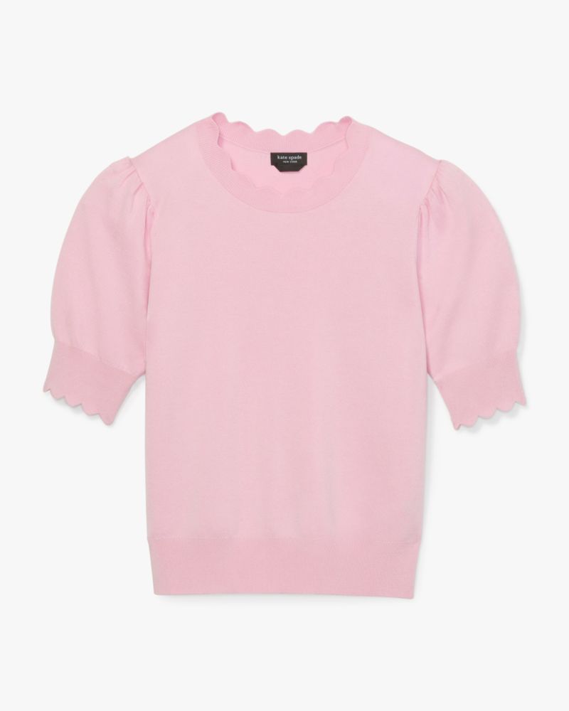 Scalloped along the neck and cuffs, this short-sleeve sweater is made from a soft silk-blend knit in our bright Pink Lemonade hue.