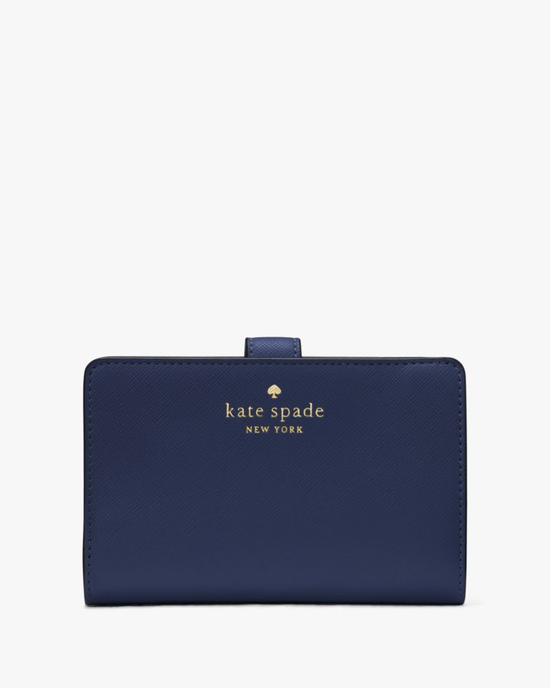 Kate Spade,Schuyler Medium Bifold Wallet,Bi Fold,PVC,Logo,Word Embellishment,Casual,Navy