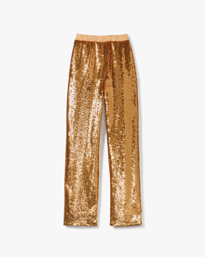Kate Spade,Sequin Jogger Pants,Polyester,Spandex,Straight,Embellished,Sequin,Party,Metallic