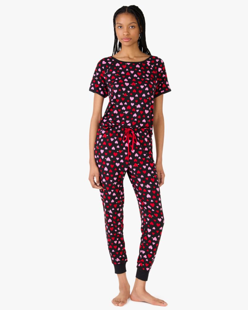 Kate Spade,Short Sleeve Jogger Sleep Set,Spandex,Polyester,Jogger,T Shirt,Logo,Sleepwear,Multi Color