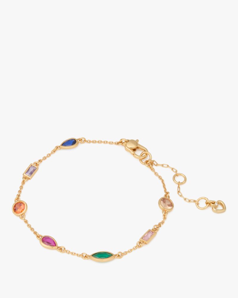 The bracelet looks like a sparkling rainbow on the wrist. It's very beautiful.