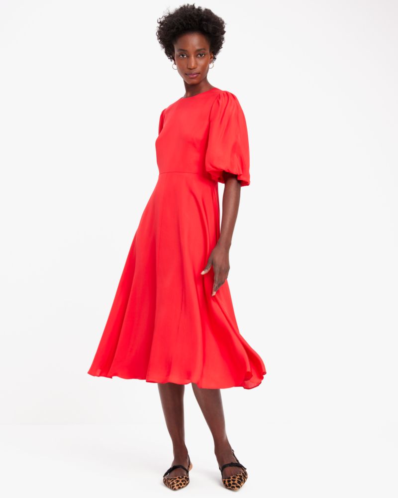Crafted of luxurious silk-blend twill, we finished our Matinee dress with a pair of dramatic draped puff sleeves...in case you are in fact headed to the theatre.