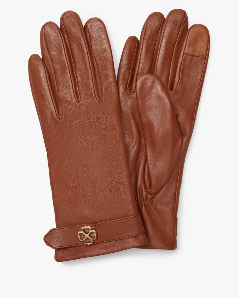 Kate Spade,Spade Flower Buckle Tech Gloves,Classic Gloves,Logo,Casual,Brown