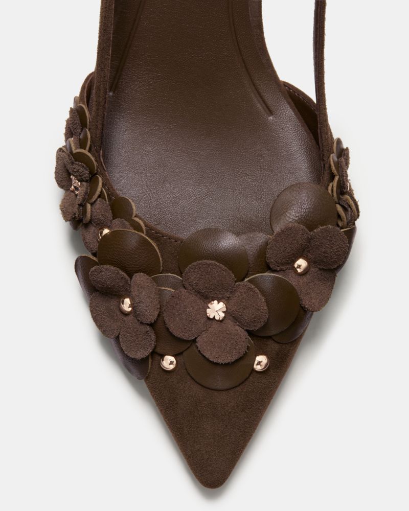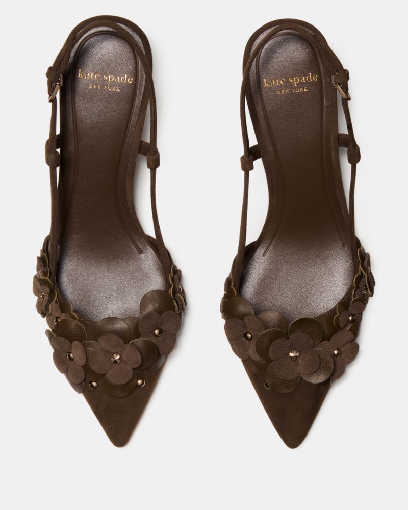 Kate Spade,Spade Flower Garden Slingback Pump,Leather,Suede,Lining Leather,Pumps,Applique,Studded,Embellished,Cut Out,Elas...,Brown
