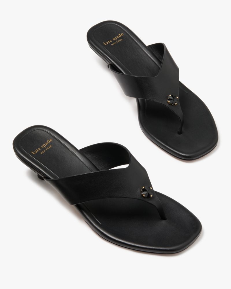 Crafted from smooth leather, these sleek kitten heel sandals are detailed with our signature Spade Flower motif.