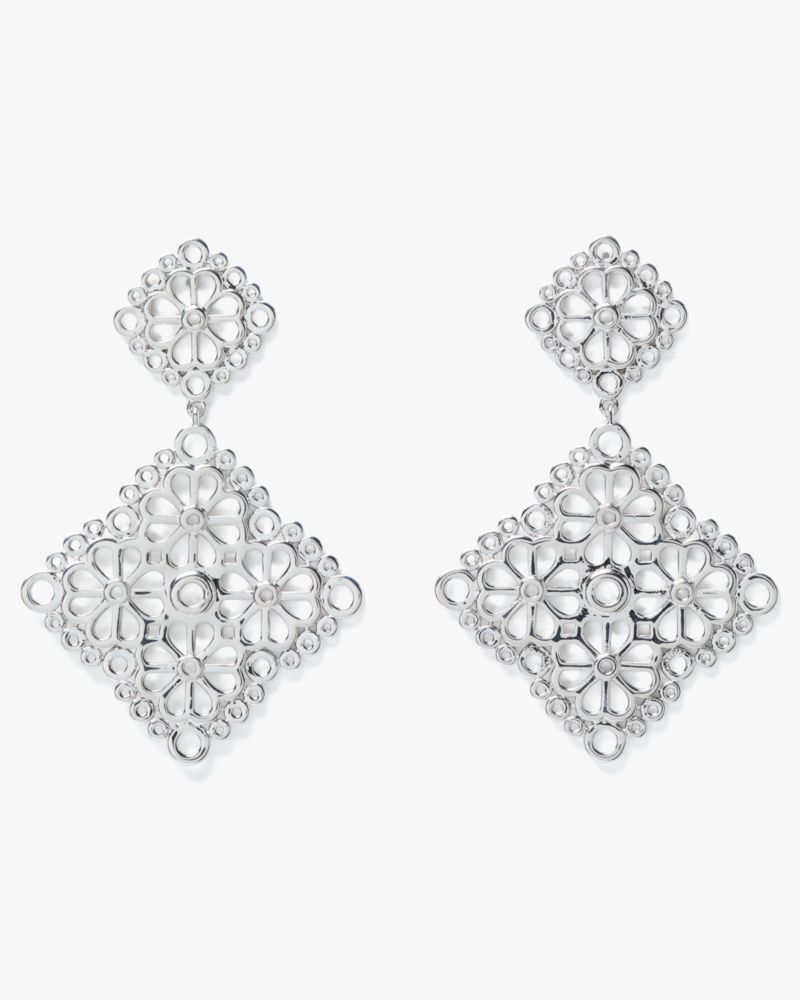 These drop earrings are made from lace-like filigree featuring our Spade Flower motif.