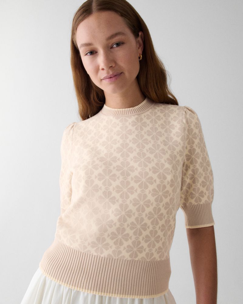 Kate Spade,Spade Flower Puff Sleeve Sweater,Beige