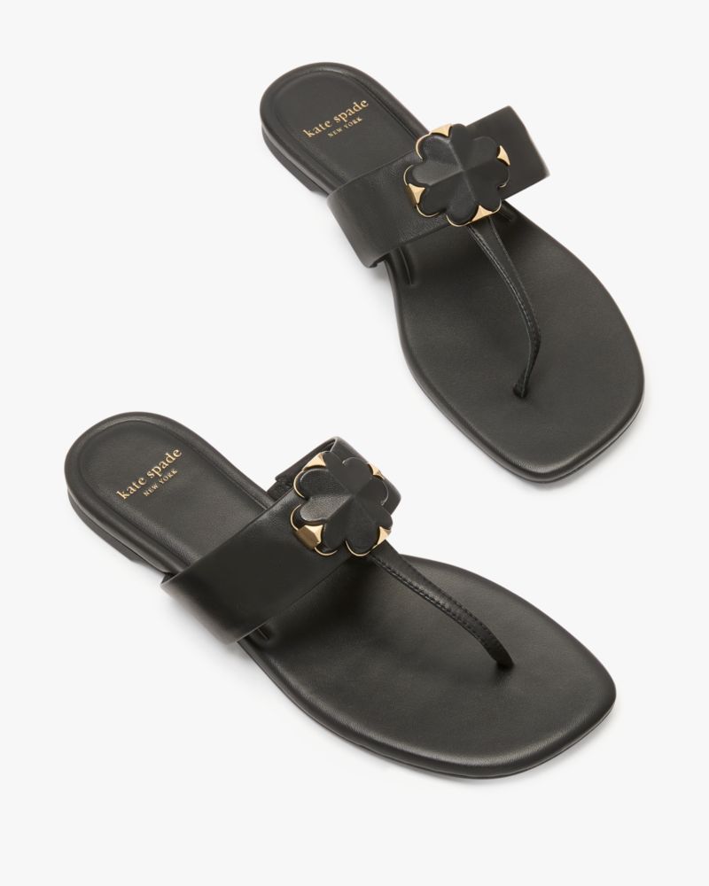 Crafted from smooth leather, these sleek thong sandals are detailed with our signature Spade Flower motif.
