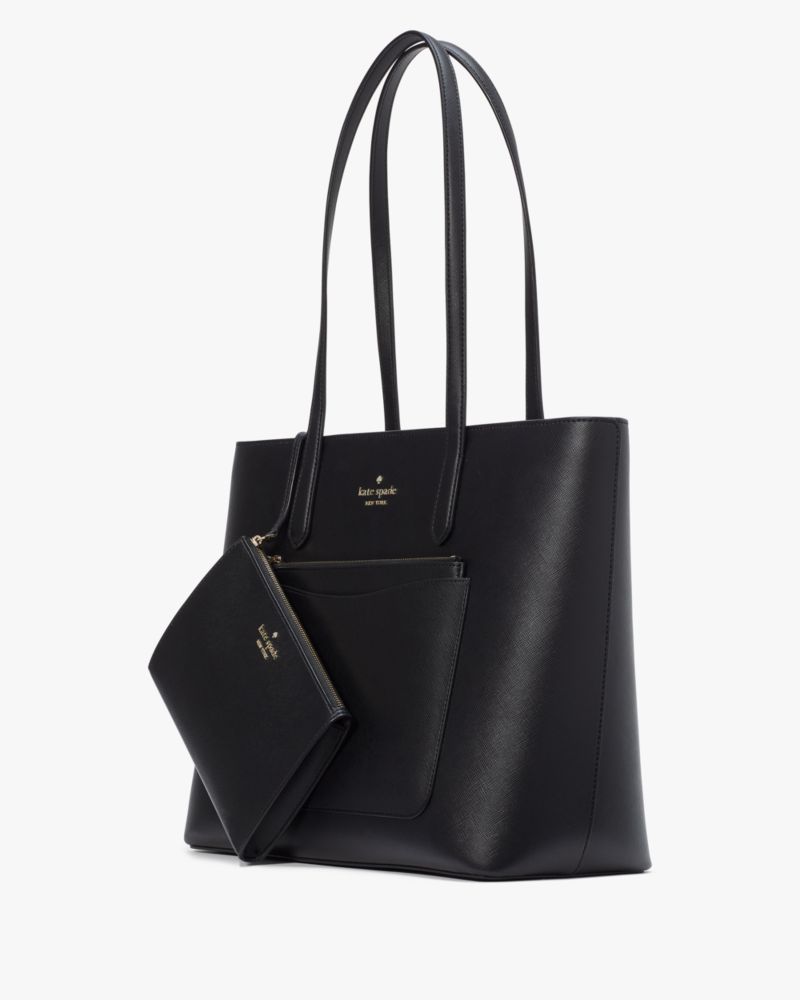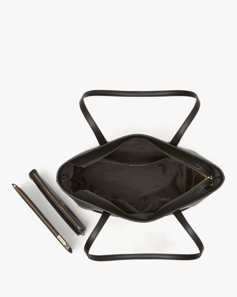 Kate Spade,Staci Large Tote Set,Tote,Pouch,PVC,Logo,Metal,Lined,Casual,Black
