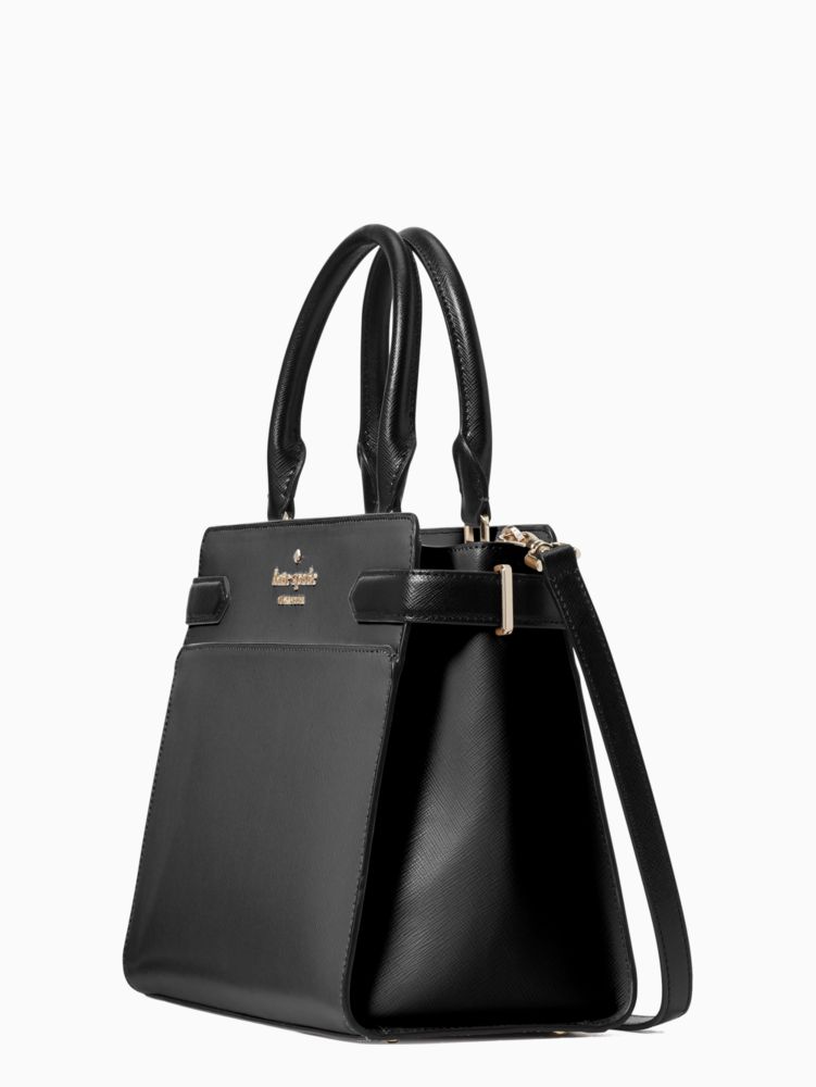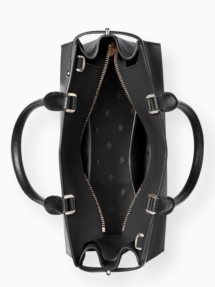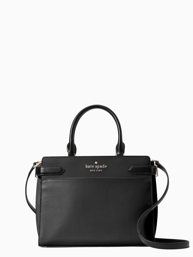 Kate Spade,Staci Medium Satchel,Leather,Satchel,Logo,Metal,Lined,Work,Black