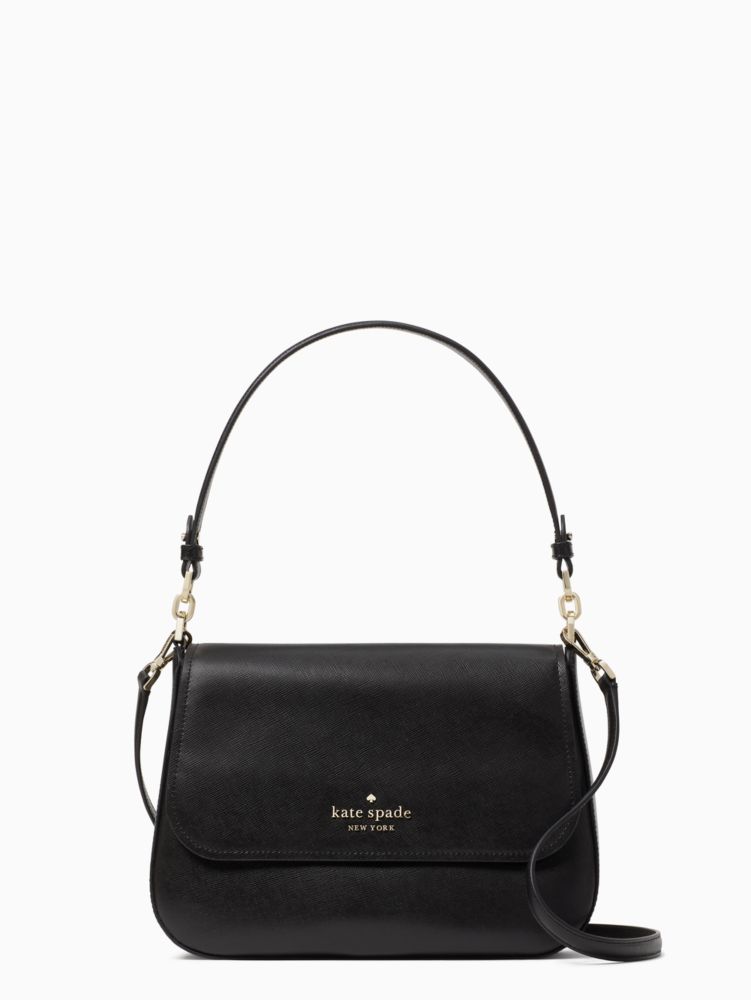 Kate Spade,Staci Saffiano Leather Flap Shoulder Bag,Shoulder Bag,Logo,Metal,Casual,Black