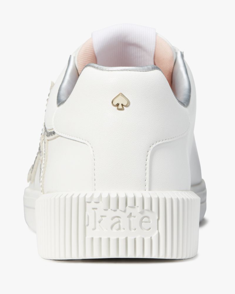 Kate Spade,Starlight Sneakers,Leather,Casual,Crystal,Logo,Metal,Rhinestones,Pull Tab,Casual,White