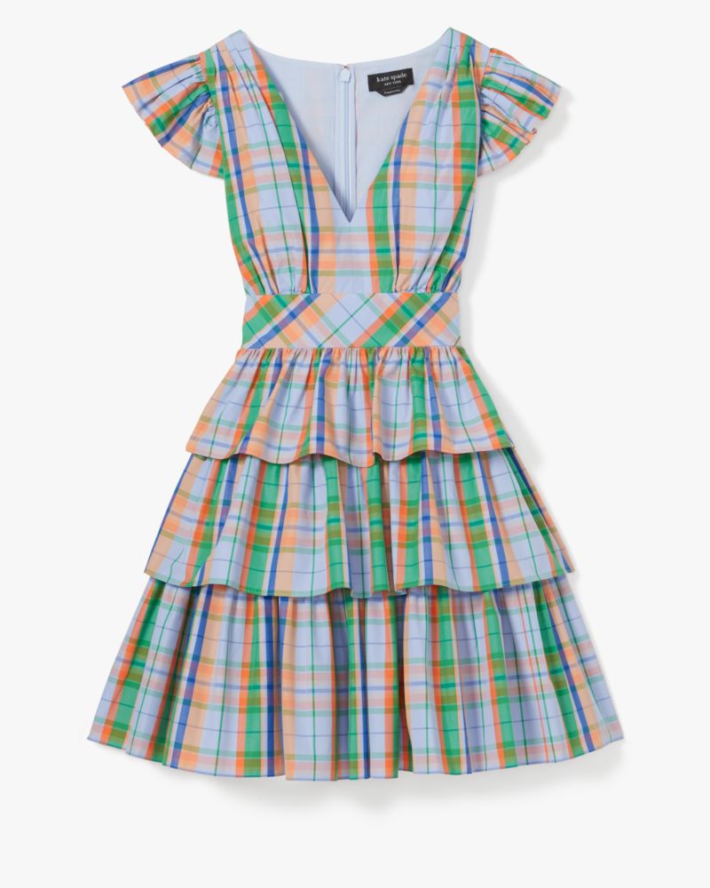Kate Spade,Sunshine Madras Tiered Dress,Cotton,A-Line,Tiered,Ruched,Day Party,Multi Color