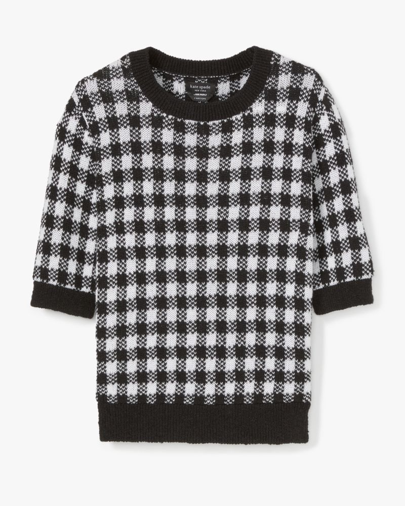 A short sleeve sweater is perfect for transitional weather. We think you'll love this one, made from our textured gingham print knit.