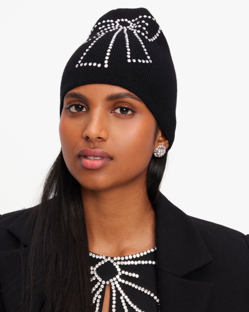 Kate Spade,Trompe L'oeil Bow Beanie,Beanie,Rhinestones,Casual,Black