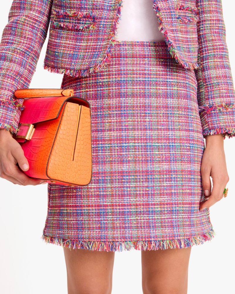 Kate Spade,Tweed Mini Skirt,Tweed,Polyester,A-Line,Frayed,Day Party,Multi Color