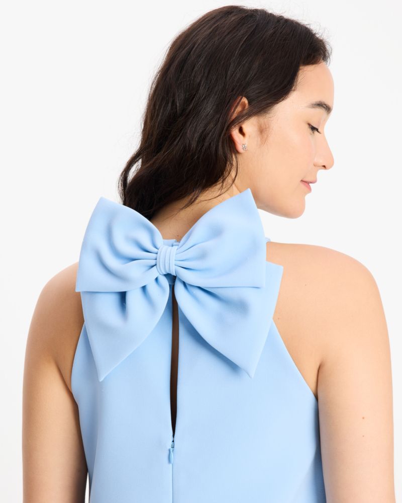 This sleek shift dress is tailored in stretch twill and finished with an eye-catching bow detail.