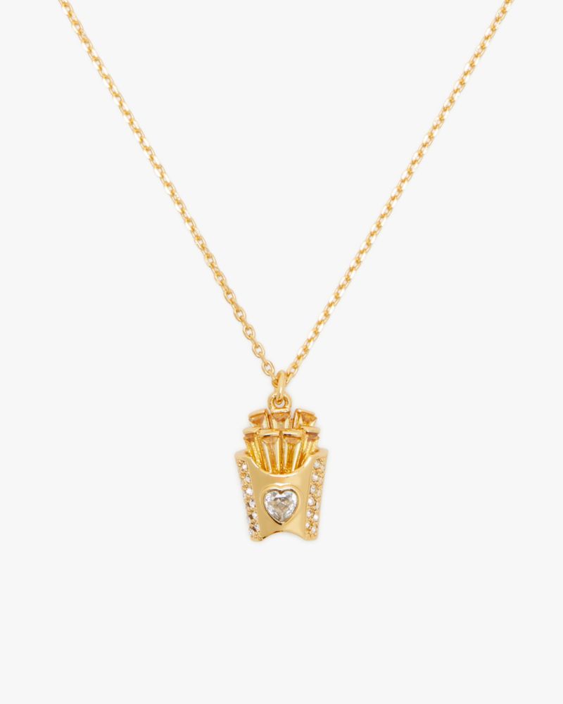 Showcasing a crystal-embellished french fry, this mini pendant is the chicest way to get your snack fix.