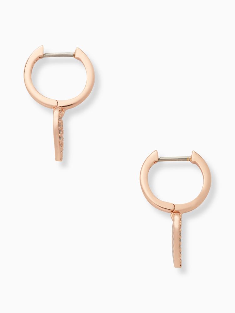 Kate Spade,Yours Truly Pave Heart Drop Earrings,Dangle Earring,Hoops,Cubic Zirconia,Gem Embellishment,Rose Gold Metal,Formal,Clear