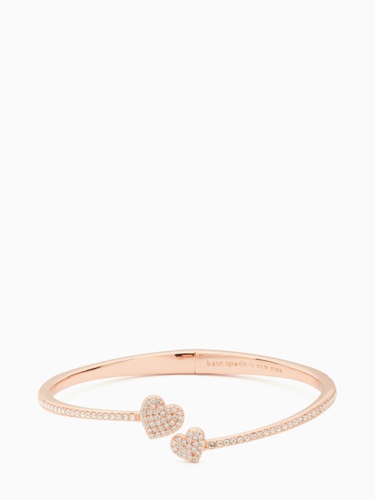 Kate Spade,Yours Truly Pave Open Hinge Cuff,Cubic Zirconia,Gem Embellishment,Heart Embellishment,Stackable,Yellow Gold,Ros...,Clear