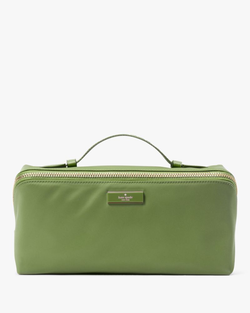 Kate Spade,Carter Nylon Travel Cosmetic Pouch,Nylon,Makeup Bag,Logo,Metal,Travel,Green