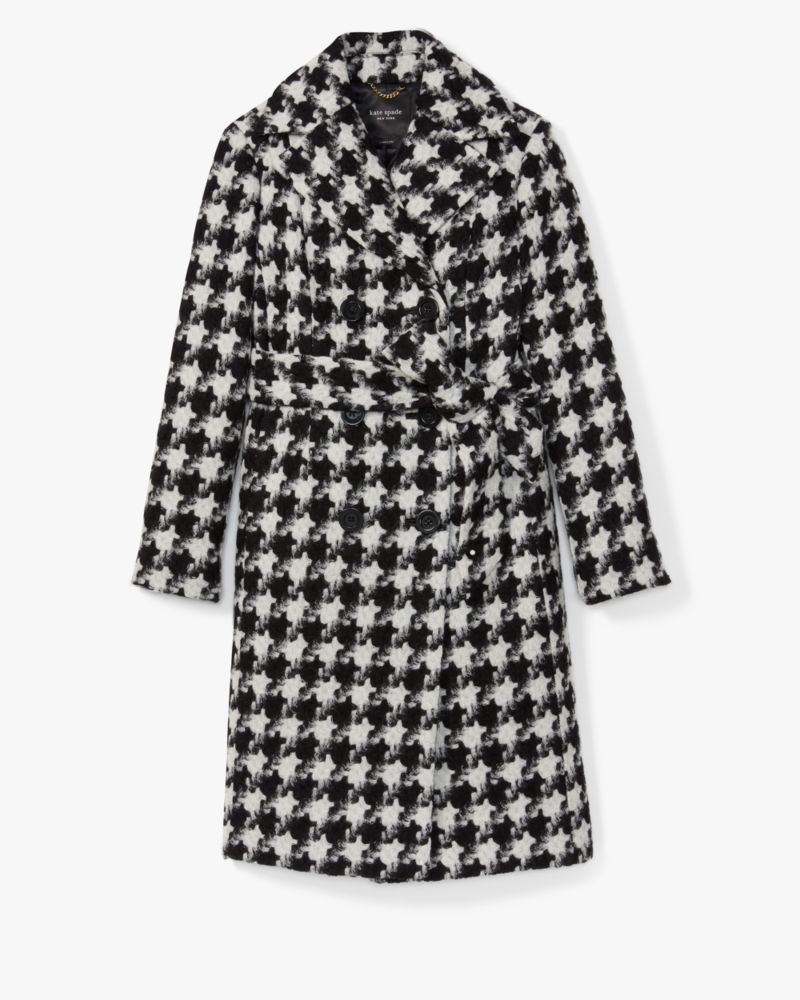Kate Spade,Houndstooth Wool Coat,Wrap Coat,Top Coat,Tie Belt,Casual,Multi Color