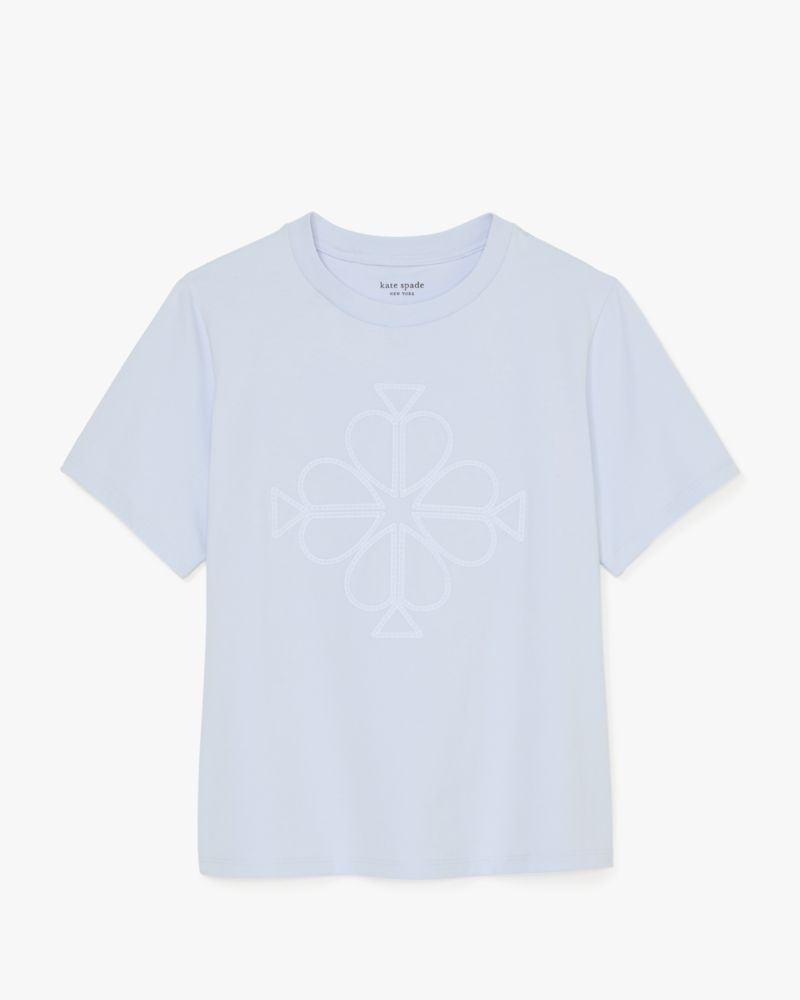 Kate Spade,Embroidered Spade Flower Logo Tee,Cotton,T Shirt,Embroidered,Logo,Casual,Blue