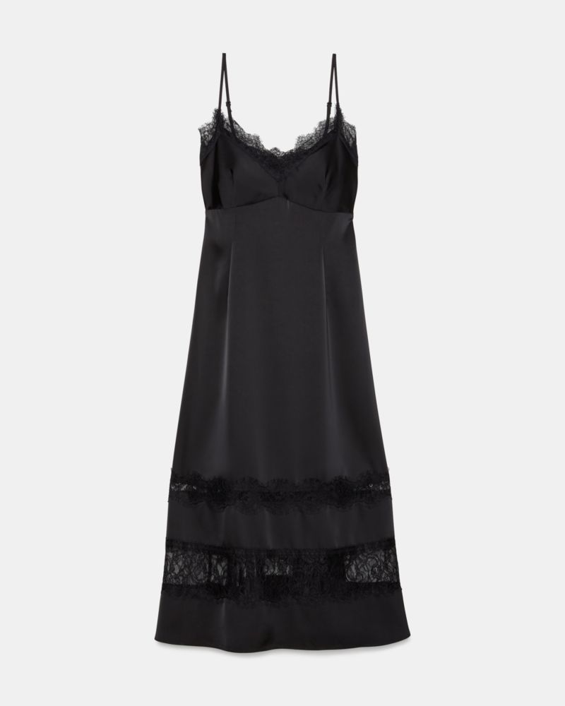 Kate Spade,Lace Trim Satin Slip Dress,Polyester,A-Line,Empire,Illusion,Eyelash Trim,Scallop,Sheer,Lace Embellishment,Day P...,Black