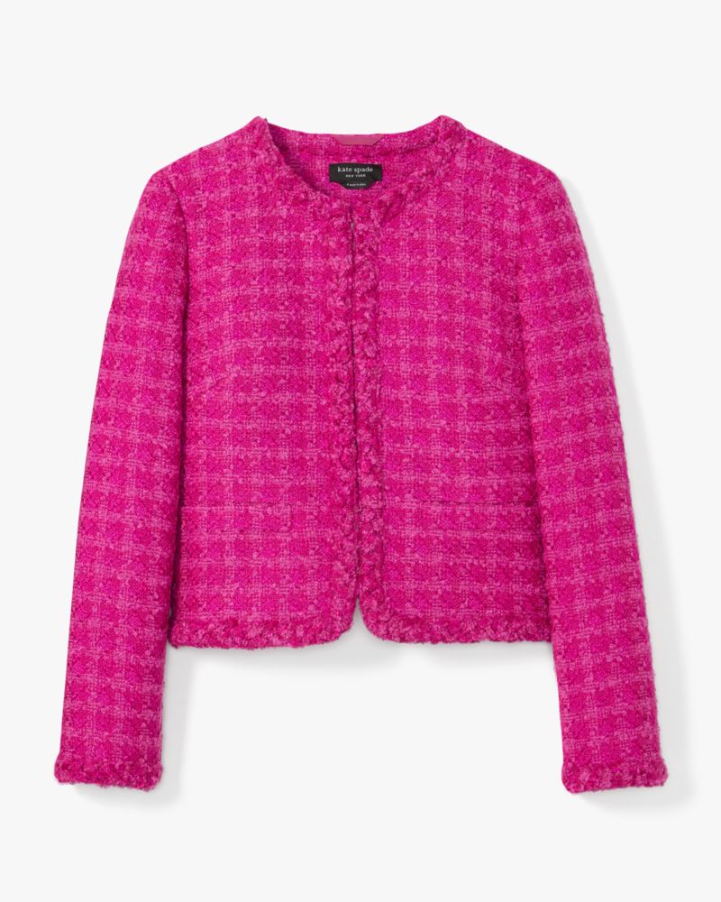Kate Spade,Cadillac Tweed Jacket,Tweed,Tweed,Frayed,Day Party,Fuchsia