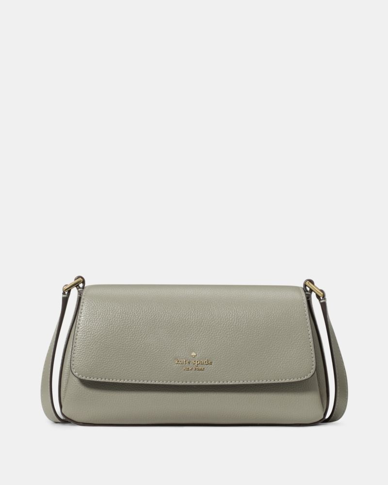 Kate Spade,Kayla Small Triple Compartment Crossbody,Calfskin Leather,Crossbody,Logo,Metal,Gold Metal,Casual,Green