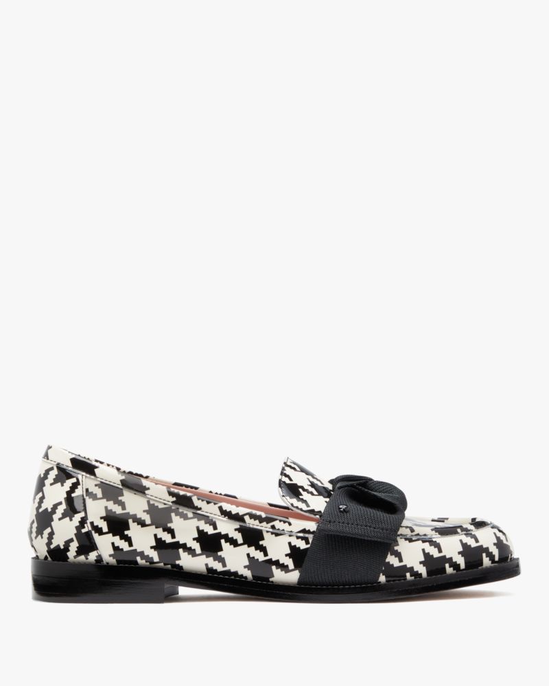 Kate Spade,Leandra Houndstooth Loafers,Rubber,Flats,Loafer,Bow,Casual,Multi Color
