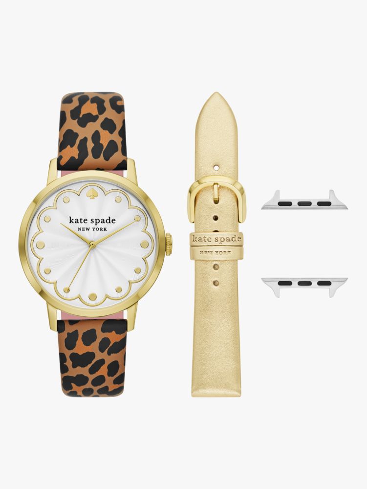 Kate Spade,Leopard Cross Compatible 38/40/41mm Band Set For Apple Watch®,Watch Strap,Analog,Leather,Engraved Detail,Logo,W...,Multi Color