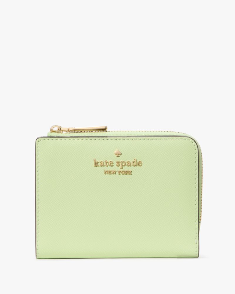 Kate Spade,Madison Small L-Zip Wallet,Bi Fold,Logo,Metal,Casual,Green